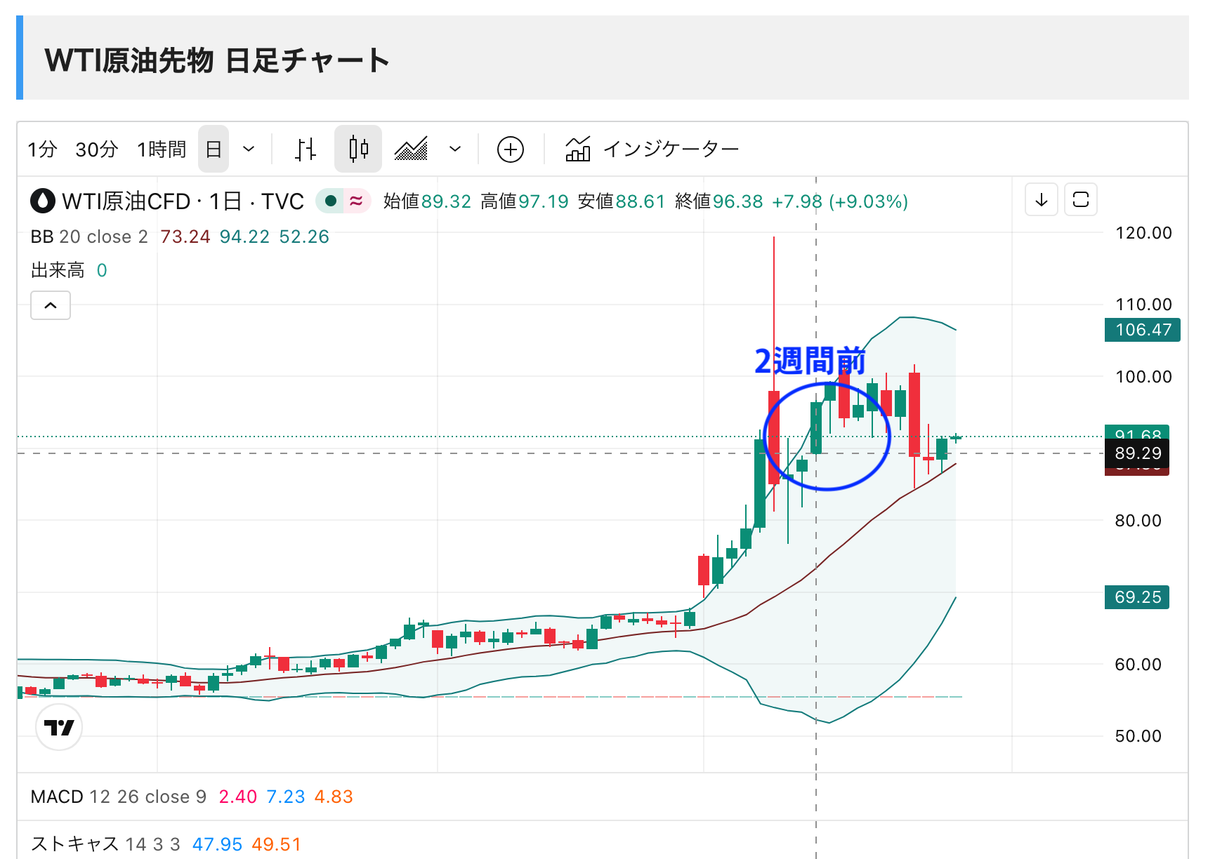 2週間前の原油先物も今のレベルで上下してた感じなので、あと2週間くらいは45-50%くらいのトレンドって感じになりそうですね。その後にまた大きな動きがあるのかどうか。。。